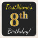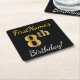 Black, Faux Gold 8th Birthday + Custom Name Square Paper Coaster