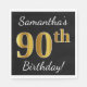 Black, Faux Gold 90th Birthday + Custom Name Napkin