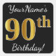 Black, Faux Gold 90th Birthday + Custom Name Square Sticker