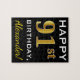 Black, Faux Gold 91st Birthday + Custom Name Jigsaw Puzzle