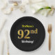 Black, Faux Gold 92nd Birthday + Custom Name Paper Plate