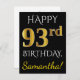 Black, Faux Gold 93rd Birthday + Custom Name Postcard