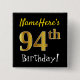 Black, Faux Gold 94th Birthday, With Custom Name 15 Cm Square Badge