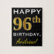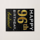 Black, Faux Gold 96th Birthday + Custom Name Jigsaw Puzzle