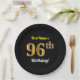 Black, Faux Gold 96th Birthday + Custom Name Paper Plate
