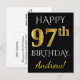 Black, Faux Gold 97th Birthday + Custom Name Postcard