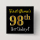 Black, Faux Gold 98th Birthday, With Custom Name 15 Cm Square Badge