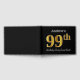 This guest book design features the ordinal number "99th" with a faux/imitation gold-like appearance. It also features a custom name, and a black coloured background. It could be used at a party for somebody celebrating their ninety ninth birthday. [~Z0000054]