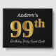 Black, Faux Gold 99th Birthday Party + Custom Name Guest Book