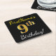 Black, Faux Gold 9th Birthday + Custom Name Square Paper Coaster