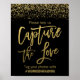 Black Faux Gold Glitter Wedding Hashtag Sign