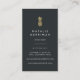 Elegant vertical business cards feature a faux gold foil pineapple illustration on a white background with two lines of custom text in soft off-black. Customise the back with your full contact details in white on charcoal off-black, displayed beneath a smaller pineapple illustration.