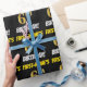 This wrapping paper design features a message like "FIRST-NAME’S 6th BIRTHDAY!", with the "6th" having a faux/imitation gold-like colour appearance, and with the name and "BIRTHDAY" in a fun, bold font. The name can be customised, and the background is coloured black. Wrapping paper like this could perhaps be used when wrapping birthday gifts being given to somebody in celebration of their sixth birthday. [~Z0000203]