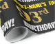 This wrapping paper design features a message like "FIRST-NAME’S 93rd BIRTHDAY!", with the "93rd" having a faux/imitation gold-like colour appearance, and with the name and "BIRTHDAY" in a fun, bold font. The name can be customised, and the background is coloured black. Wrapping paper like this could perhaps be used when wrapping birthday gifts being given to somebody in celebration of their ninety third birthday. [~Z0000203]