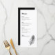 Minimal design Wedding Day Menu card features an elegant peacock feather line art illustration with a classic black and white colour theme. Modern and clean typographical design, this piece is ready for you to customise with your menu details. Part of an ever-growing range of stationery, please browse the Black Peacock Feather Wedding Suite for matching items.