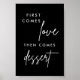 Black First Comes Love Then Comes Dessert 4x6 Poster