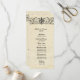 This charming wedding program has an easy template that allows you to fill in the wedding party on one side, and the order of ceremony on the other. Click the customise button if you need to change anything. Featuring a vintage parchment background image, and black fleur de lis trim.