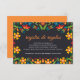 This Black Floral Colorful Botanical Spanish Wedding Enclosure Card design features a vibrant floral border composed of bold orange, red, yellow, and blue flowers interspersed with lively green leaves and stems. The symmetrical layout frames a central black space, ideal for text, and gives the overall composition a structured, festive appearance. The flat, clean illustration style and the bright, saturated colors evoke a cheerful, folk-art-inspired aesthetic suitable for celebratory occasions like weddings.