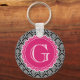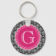 Black Floral Damask Pattern Hot Pink Monogram Key Ring