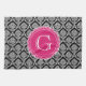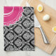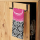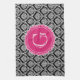 Black Floral Damask Pattern Hot Pink Monogram Tea Towel