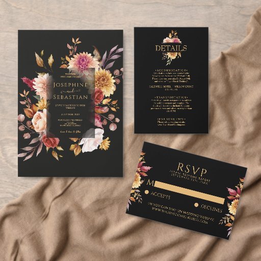 Black Floral Floral Fall Boho Wedding Details Enclosure Card