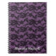 Black floral lace on purple notebook. Reminiscent of black fishnet stockings. A great gift for the bridesmaids at your bachelorette party!