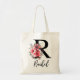 Black Floral Letter R Monogram with custom Name Tote Bag