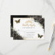 Black Floral Roses Gold Quinceañera Butterflies RSVP Card