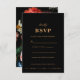 Dark Black Floral RSVP Wedding Invitation Card. This card included meal choices. Copper coloured text fully customisable. Floral on back. Moody, elegant and modern.