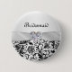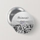 Classy elegant floral black swirls damask pattern on a light silver background Wedding Bridesmaid Button with ribbon and gemstone effect. Please note: ribbon and gemstone are the printed image.