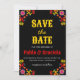 Celebrate your love with this elegant and festive save the date card! Featuring a beautiful floral design inspired by traditional Mexican papel picado, this card is perfect for a destination wedding or a fiesta-themed celebration. The black background creates a sophisticated and modern look, while the vibrant colours and intricate details add a touch of traditional charm.
