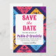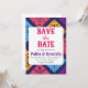 Celebrate your love with this elegant and festive save the date card! Featuring a beautiful floral design inspired by traditional Mexican papel picado, this card is perfect for a destination wedding or a fiesta-themed celebration. The black background creates a sophisticated and modern look, while the vibrant colours and intricate details add a touch of traditional charm.