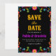 black flowers mexican save the date invitation