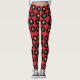 Black Flowers Red Background Scandinavian Flowers Leggings