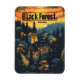 A mystical and nostalgic depiction of the Black Forest (Schwarzwald) in Germany, known for its dense, evergreen forests and enchanting beauty. The design captures the region's lush woodlands, tranquil lakes, and traditional half-timbered houses. Rendered in a vintage style, the artwork evokes the serene and magical atmosphere of the Black Forest, inviting viewers to explore its scenic trails, charming villages, and rich cultural heritage.