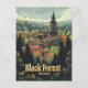 A mystical and nostalgic depiction of the Black Forest (Schwarzwald) in Germany, known for its dense, evergreen forests and enchanting beauty. The design captures the region's lush woodlands, tranquil lakes, and traditional half-timbered houses. Rendered in a vintage style, the artwork evokes the serene and magical atmosphere of the Black Forest, inviting viewers to explore its scenic trails, charming villages, and rich cultural heritage.
