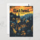 A mystical and nostalgic depiction of the Black Forest (Schwarzwald) in Germany, known for its dense, evergreen forests and enchanting beauty. The design captures the region's lush woodlands, tranquil lakes, and traditional half-timbered houses. Rendered in a vintage style, the artwork evokes the serene and magical atmosphere of the Black Forest, inviting viewers to explore its scenic trails, charming villages, and rich cultural heritage.