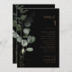 This black formal minimal table number 1 is perfect to compliment a rustic wedding. The design features watercolor green eucalyptus foliage in a black backround.