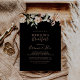 This black formal royal floral wedding breakfast invitation is perfect for a modern event. The design features watercolor pink, blush, and white elegant flowers with emerald green leaves.