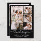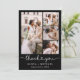 Show your appreciation with this Black Four Photo Collage Script Wedding Thank You Card. Featuring a modern black background, elegant script typography, and space for four of your favourite wedding photos, this card blends timeless style with personal charm. Perfect for formal, black-tie, or monochrome wedding themes, it’s an elegant way to share memories and gratitude. Personalise with your names and message to create a sophisticated keepsake your guests will love.