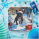 A heartwarming holiday illustration featuring a cheerful dog playing in the snow, wearing a Santa hat and surrounded by colourful gift boxes. In the background, children build a snowman beside a snow-covered Christmas tree, creating a joyful winter wonderland. Perfect for spreading holiday cheer and capturing the magic of Christmas.