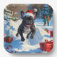 Black French Bulldog Christmas Festive Snow Scene Paper Plate