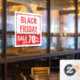 Black Friday sale window cling in red and white for a retail location or business. Featuring modern bold typography to make potential customers see it from afar.