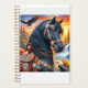 Two artworks of a Friesian stallion wearing a fancy western saddle and bridle, an Eagle and Lizard are near him. A gorgeous waterfall and sunset are in the background. Printed on the front and back of a Planner.