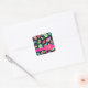 Black Fuchsia Pink Modern Paisley Monogram Square Sticker
