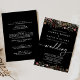 This black galant wildflower front and back wedding invitation is perfect for a rustic wedding. The design features pink, purple, blush, yellow, dusty blue, red, burgundy meadow wild flowers assembled in a seamless and delightful floral pattern, evoking natural beauty