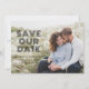 Geometric retro art deco black text over an engagement photo wedding save the date.