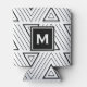 A modern and customisable can cooler featuring black and white triangles and lines pattern. Personalise this cooler with your own initials or a loved ones. This will be perfect as a gift.