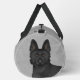 Black German Shepherd Dog And Custom Name Grey Duffle Bag