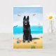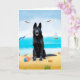 A Black German Shepherd dog sitting on beach is a perfect gift idea for someone who love this dog breed.